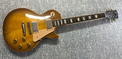 I went to pick this guitar up expecting it to be a back-breaker but was pleasantly surprised when it seemed to almost jump up, out of the guitar stand. Ah ha, it’s a chambered Les Paul. When these came out there wasn’t a lot excitement in the air but now it seems they have found their place! A lightweight guitar means you can jump around onstage, not get tired at rehearsal or your Mum can move it out the way when she vacuums your room. Not only does this Les Paul look fantastic with its honey-burst flame-maple top but the Burstbucker Pro pickups in it sound beautiful. Being a bit lighter in weight at 7.59lbs/3.45kg, you would think it would be a bit lighter in tone but no, this thing is a tone monster! Lots of tone and plenty of grunt when needed. I’m really enjoying playing this guitar with its 60’s neck; you can play very lightly or you can dig in and make it sound awesome! This delightful guitar comes with its original hardshell case.