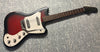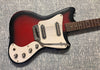 This cool little guitar has more twang than you could ever need. Built at the Danelectro factory and badged as a Silvertone it features two lipstick tube pickups. The bridge pickup is original and the neck pickup is a Kent Armstrong version; both sound great! A repro-style trem arm has been added and a it has a couple of changed knobs otherwise everything else is pretty stock and it plays great and sounds fantastic. A great American vintage guitar from the mid 60’s. Weight is pretty good at 7.38lbs/3.35kg. Mark Knopfler has used one of these for a very long time so they must be good! Cool guitar; comes with its original shaped cardboard case.